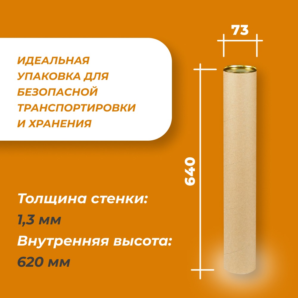 Надежный картонный тубус – идеальное решение для хранения и транспортировки ваших творческих работ. Конструкция из навивного картона толщиной 1 мм обеспечивает отличную защиту от повреждений, влаги и пыли.
